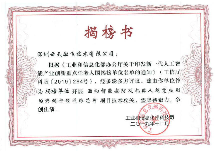 此外,云天励飞还是工信部《新一代人工智能产业创新重点任务揭榜工作方案》的“揭榜单位”,负责智能终端人脸识别系统和终端神经网络芯片两个重点项目的技术攻关。