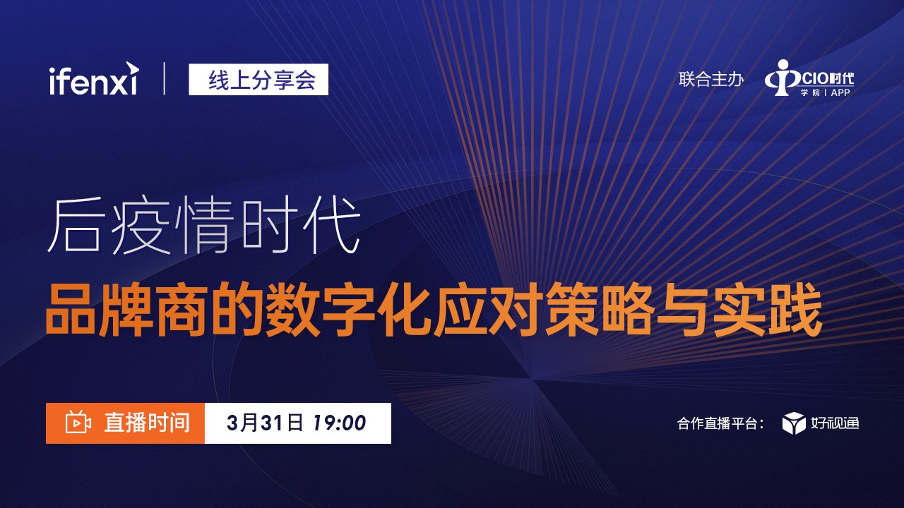 作为一家产业数字化研究与咨询机构,此次爱分析将联合零售企业,于3月31日(星期二)晚19:00共同推出以“后疫情时代,品牌商的数字化应对策略与实践”的线上分享会。我们希望通过线上分享的形式,与零售行业同仁云端对话,共同探讨中国零售行业的变局以及品牌商的应对策略战。
