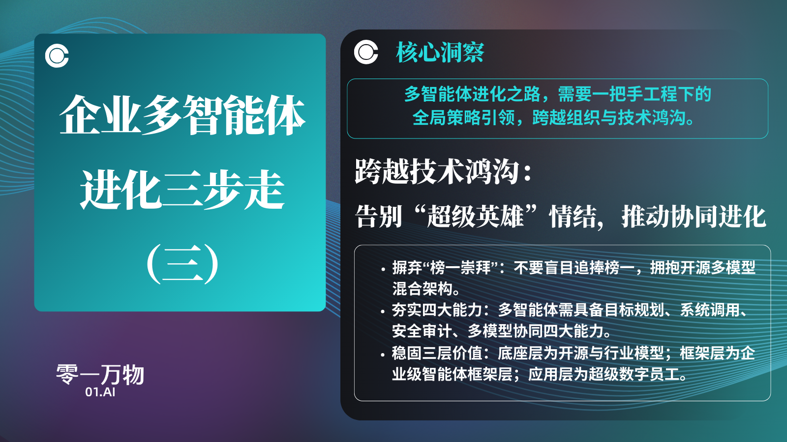 零一万物中国区解决方案和交付总经理韩炜表示,企业智能体正从“单点工具”进化为“智能管理系统”。多智能体架构的本质,是重构了企业的组织形式,让AI从“单点提效”转向“全局优化”。这不仅是技术的跃迁,更是组织生产关系的重组。